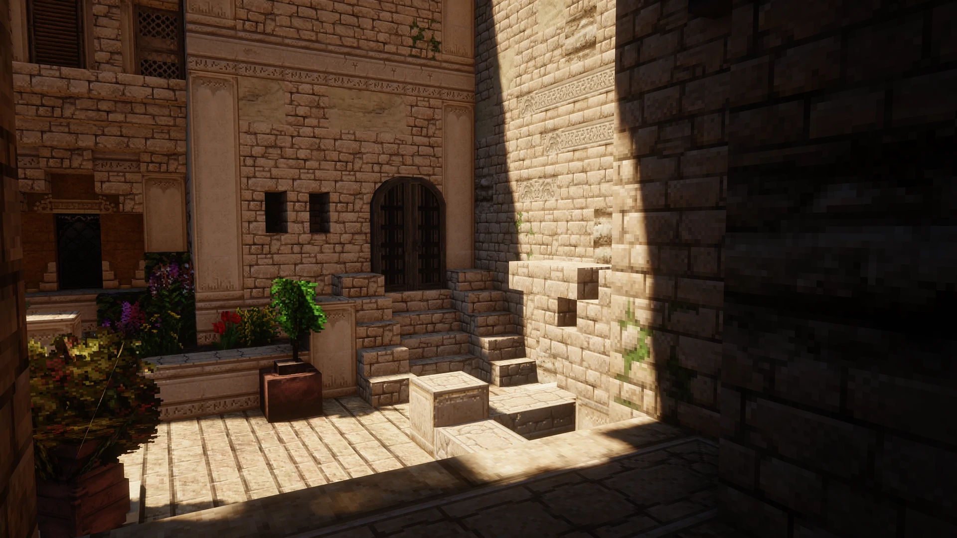 此外,有时我们还能在一些光影中见到 屏幕空间追踪 ,当它们与体素光追混合使用时,可以缓解一些非完整方块的体素形态问题(例如半砖在体素中的形态是完整方块或者直接被忽略时)。